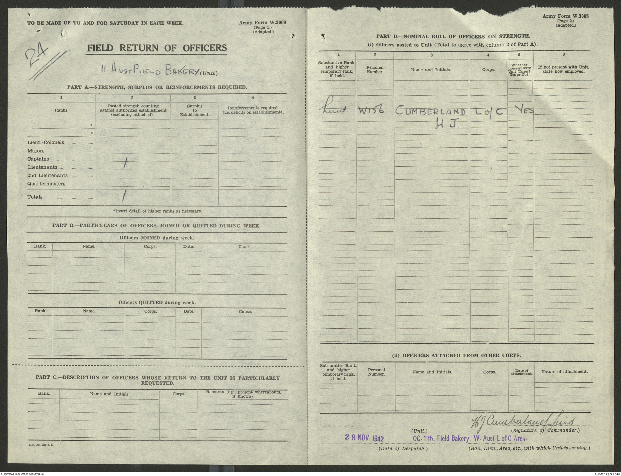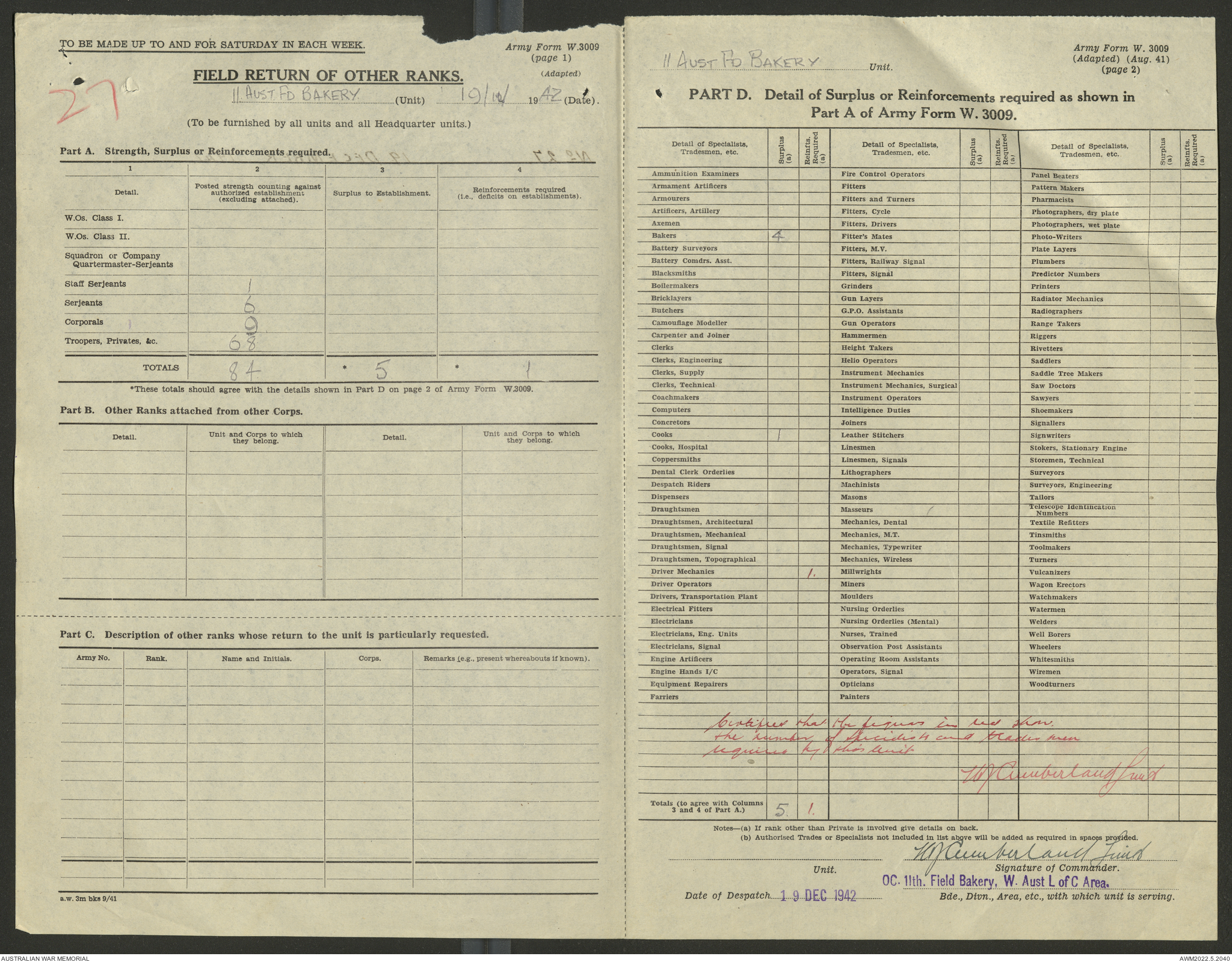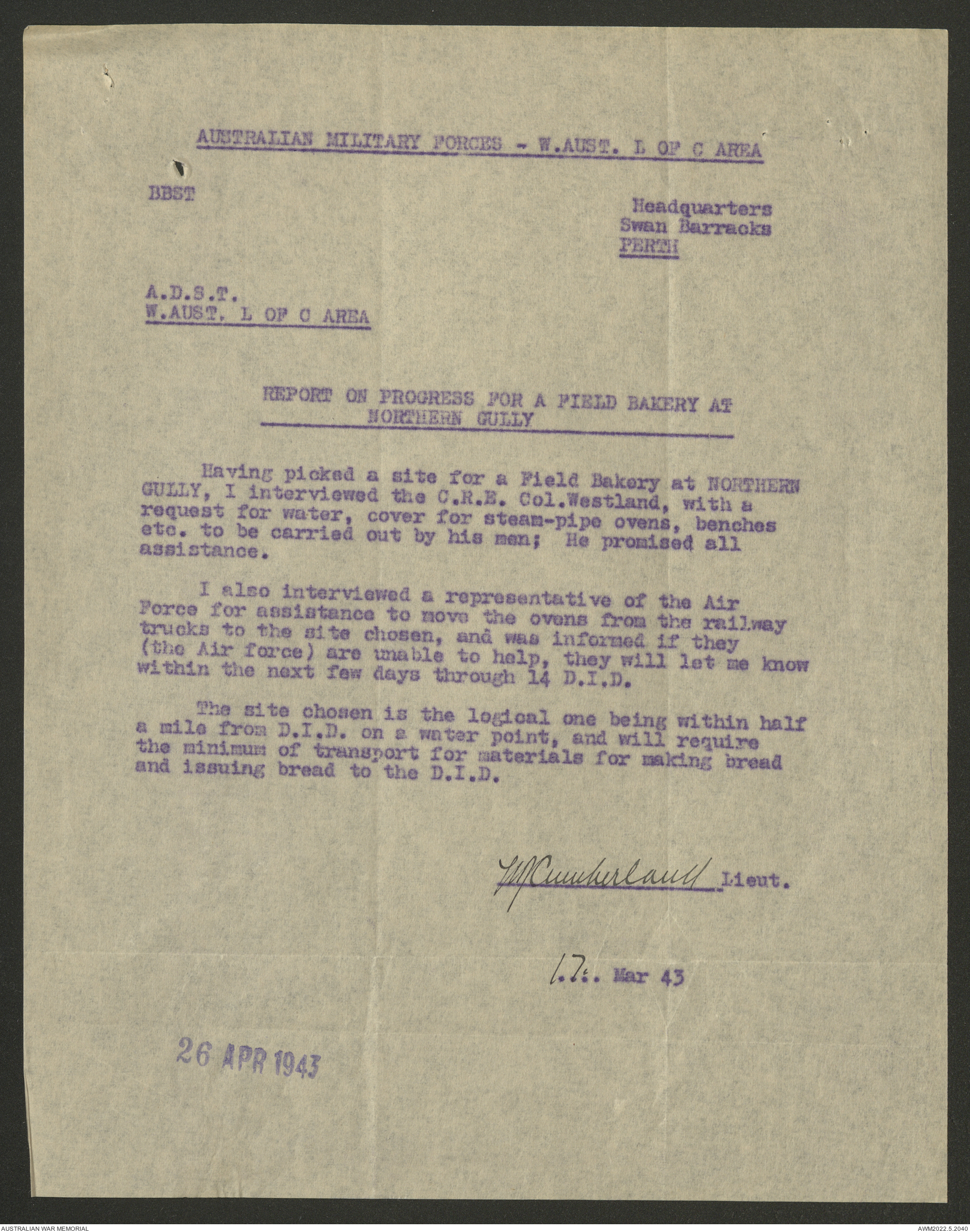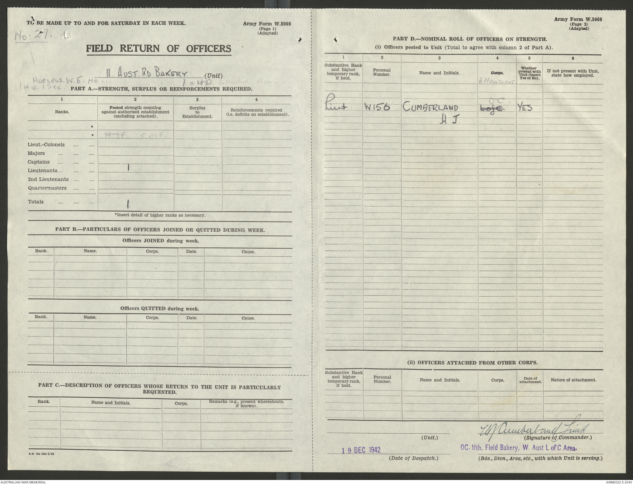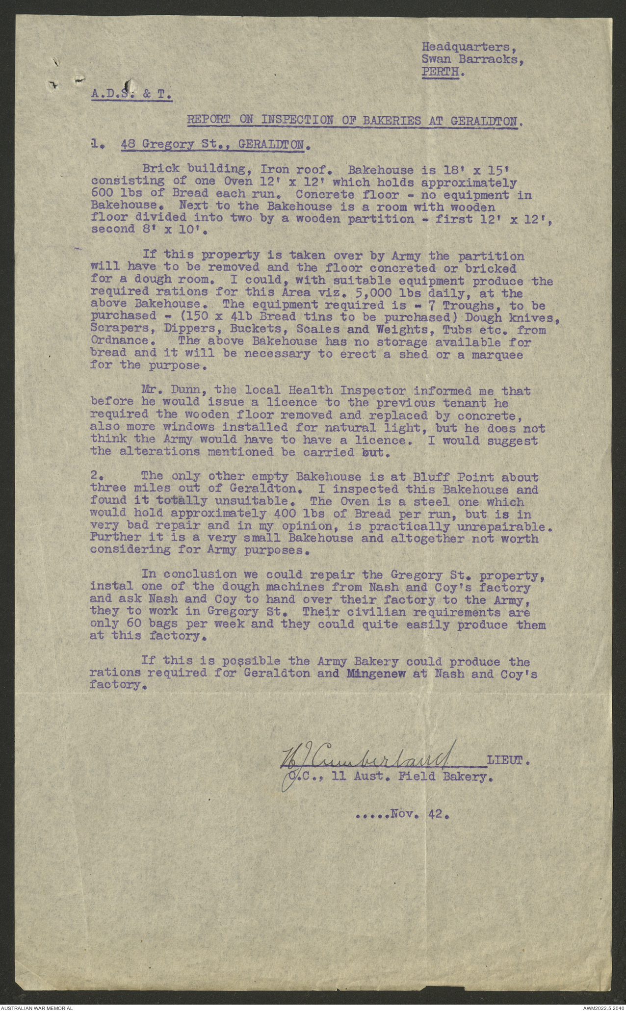 AWM52 10/27/13/1 - [Unit War Diaries, 1939-45 War] 11 Australian Field Baking Company, November 1942 - April 1943