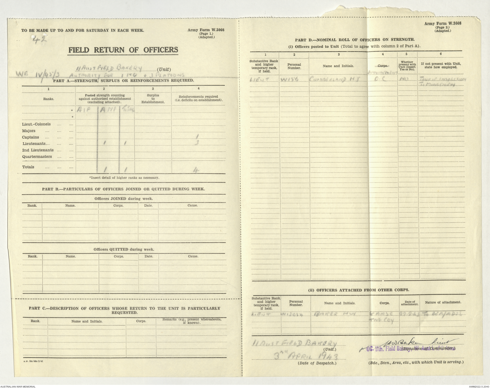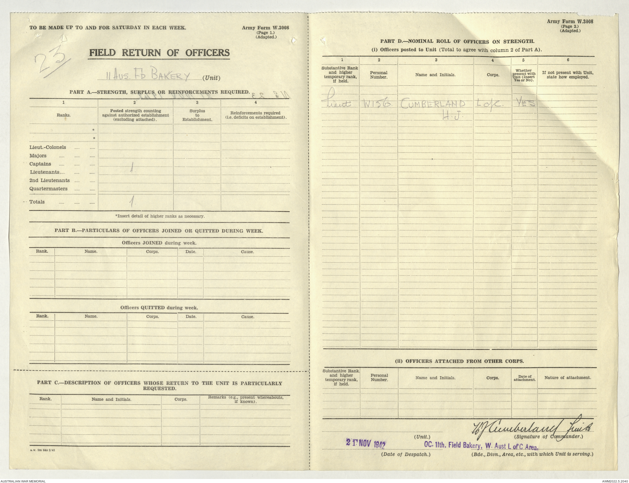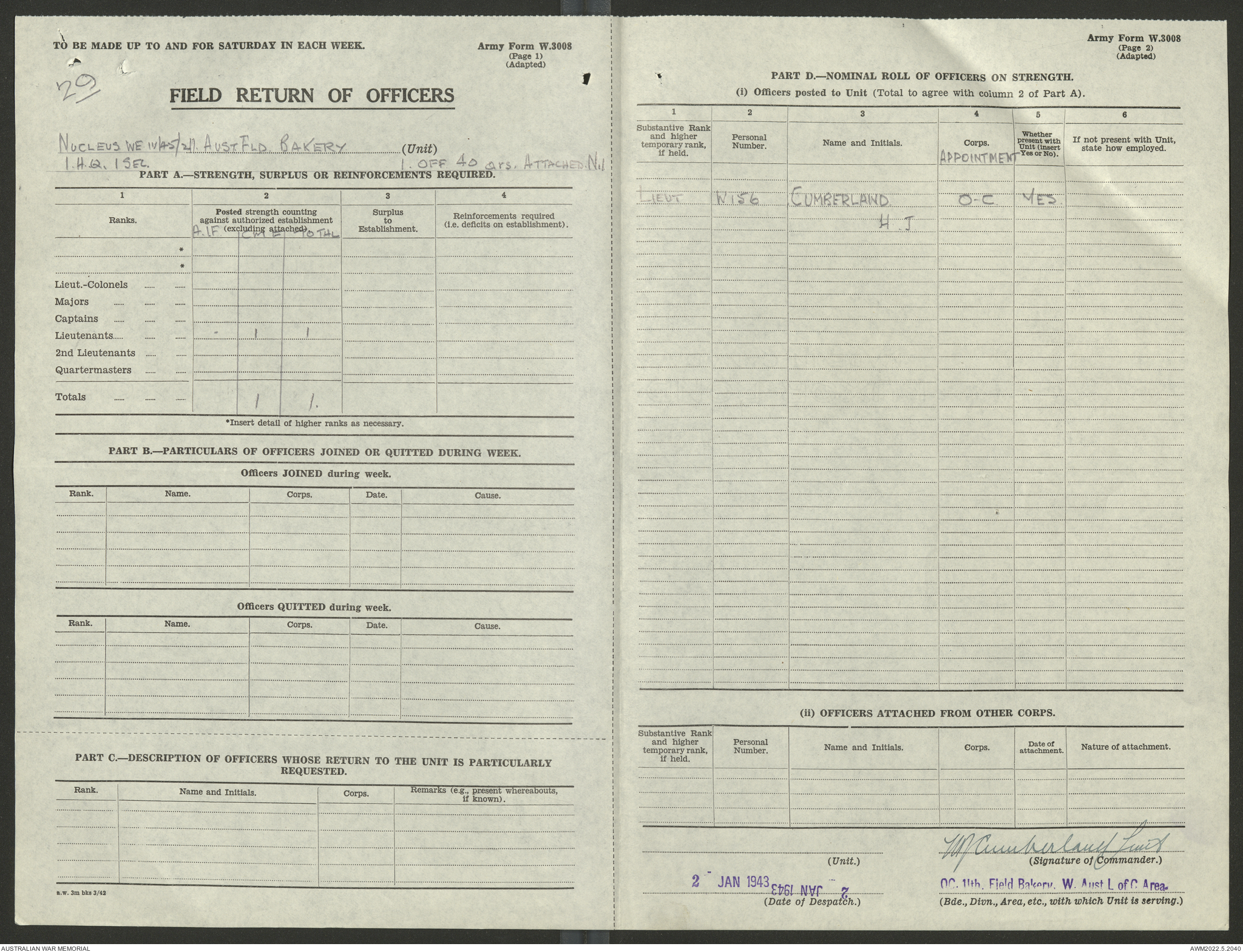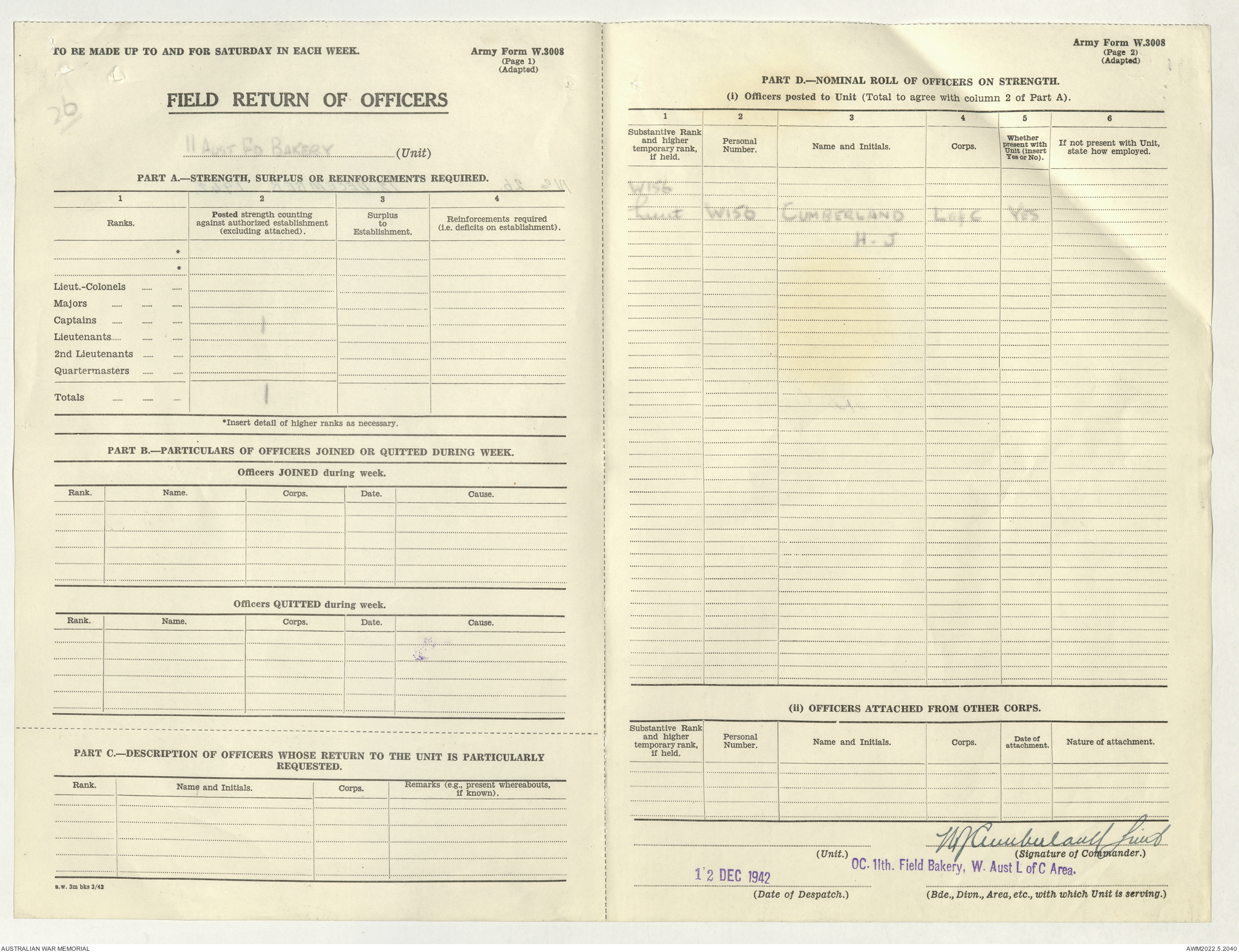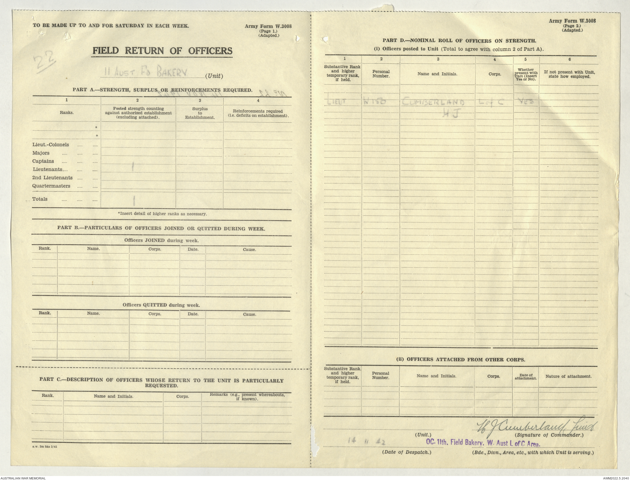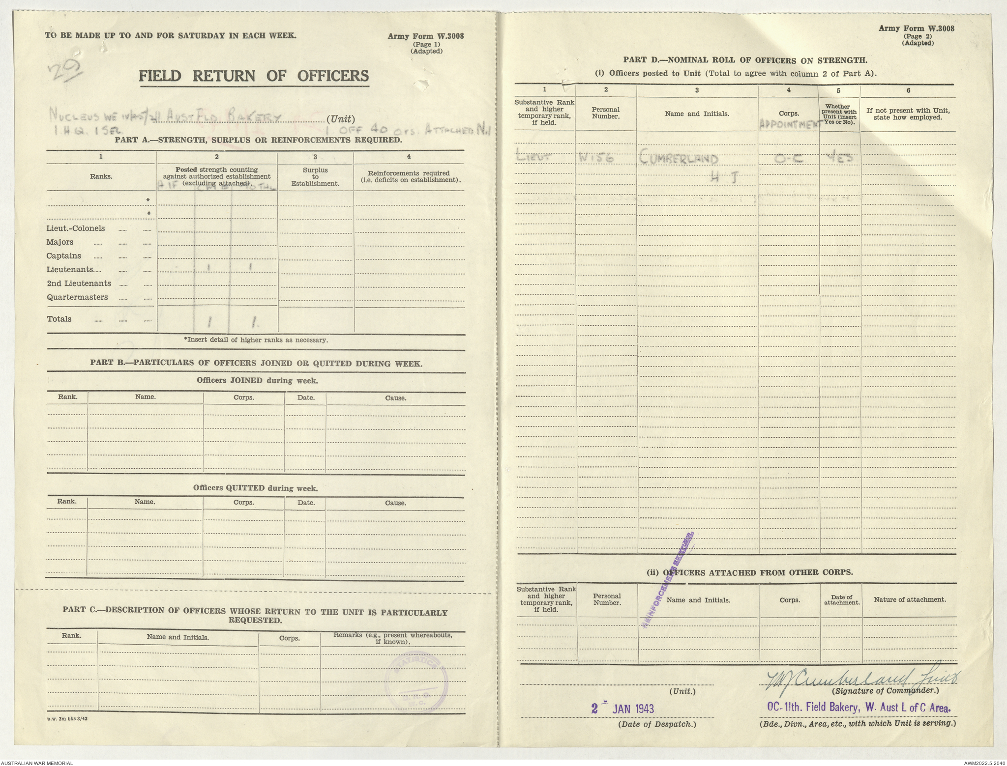 AWM52 10/27/13/1 - [Unit War Diaries, 1939-45 War] 11 Australian Field Baking Company, November 1942 - April 1943