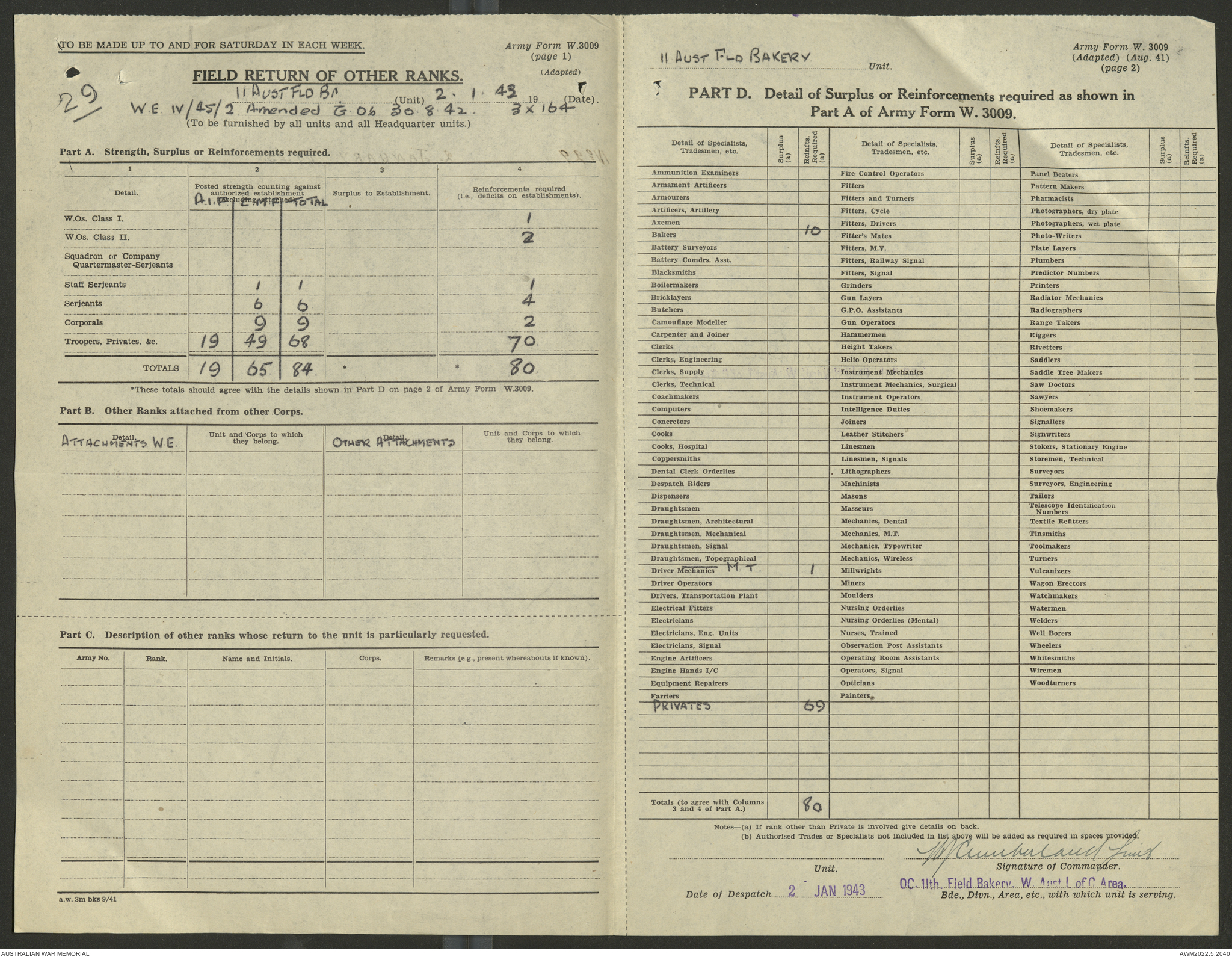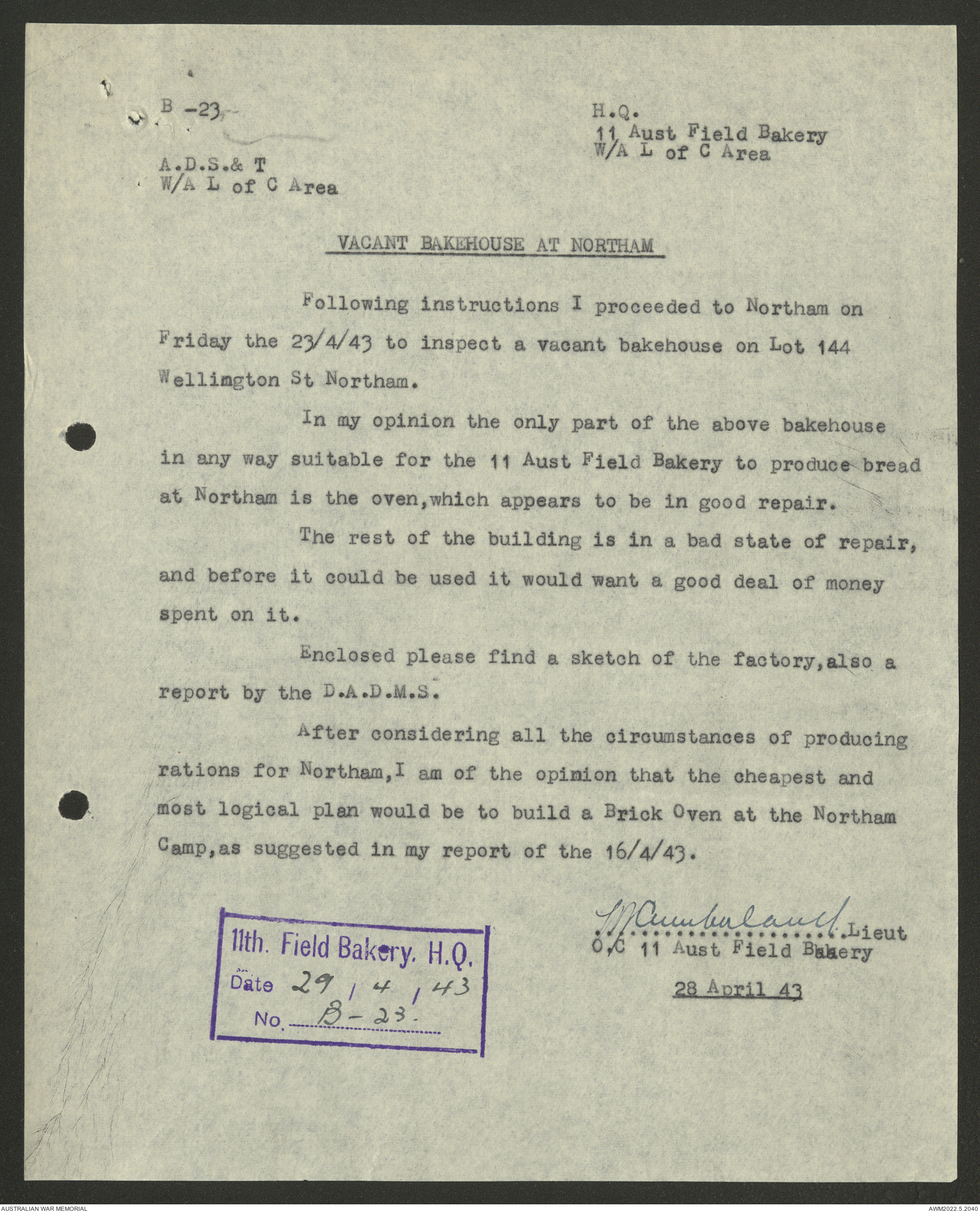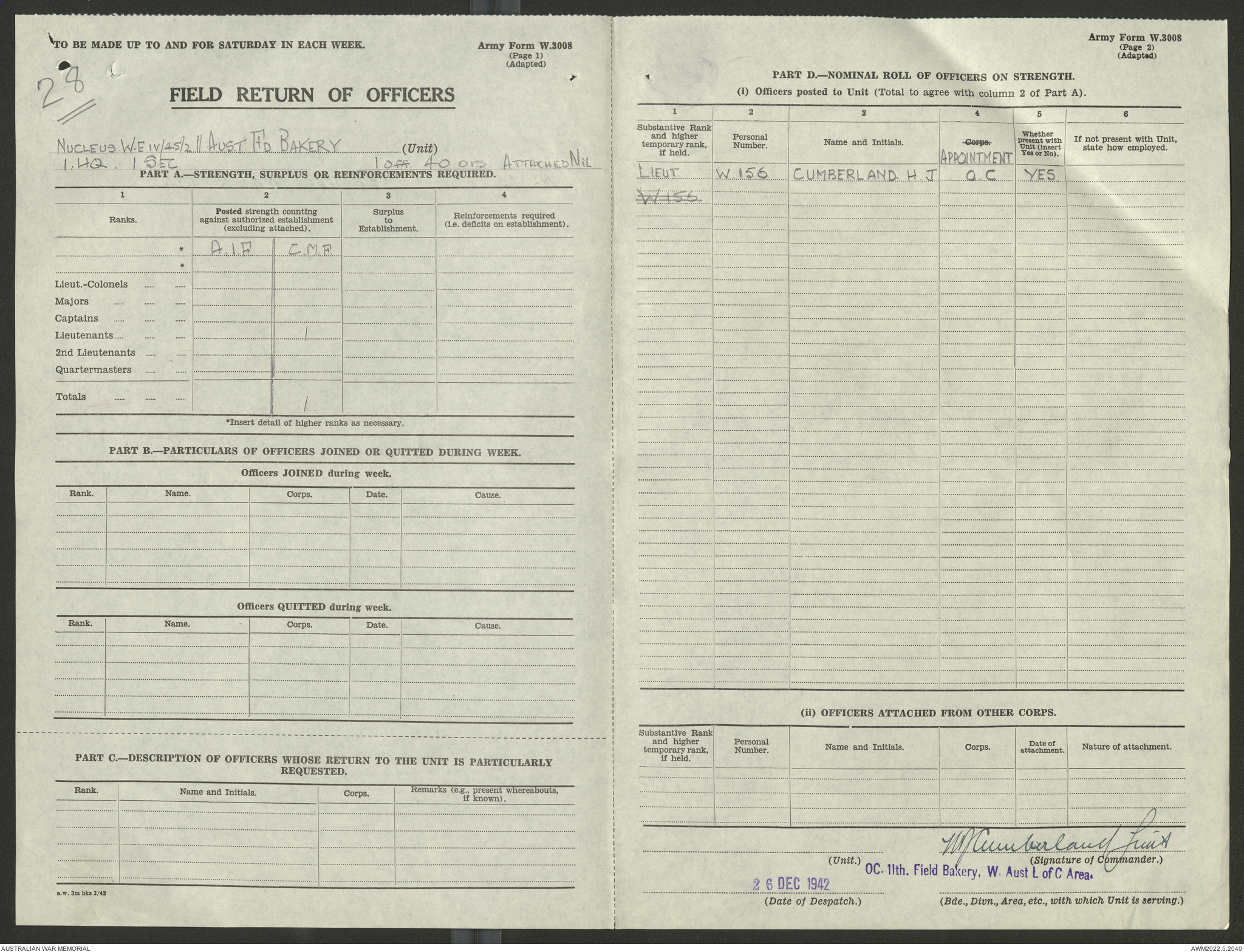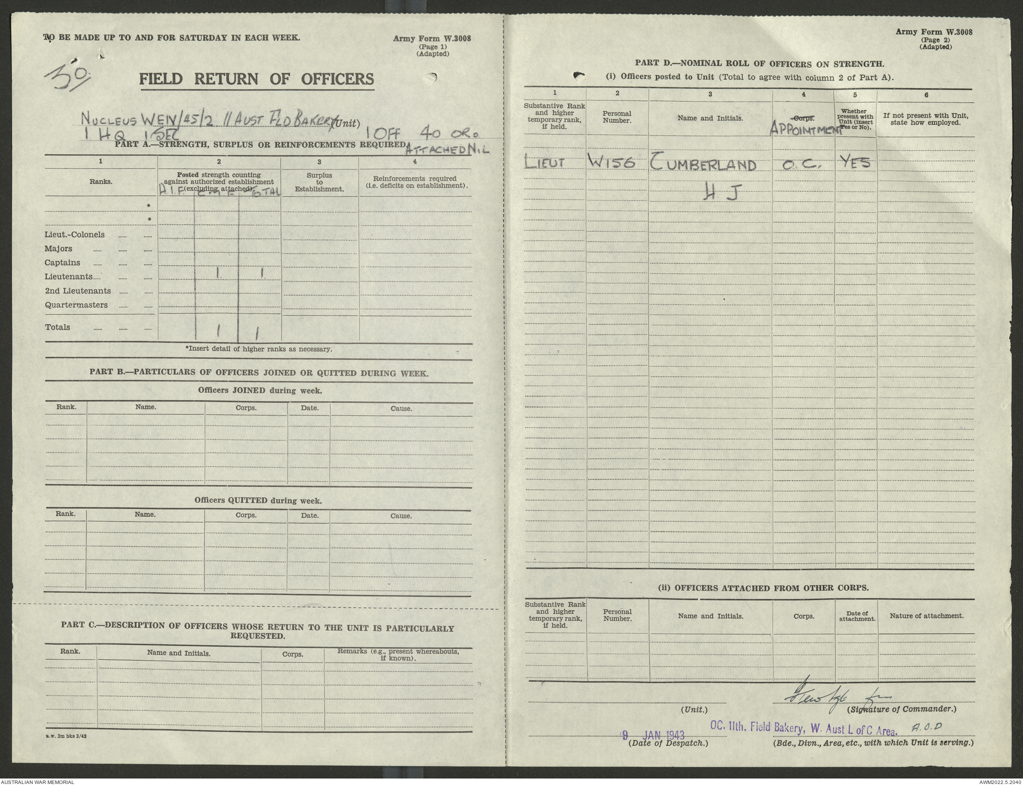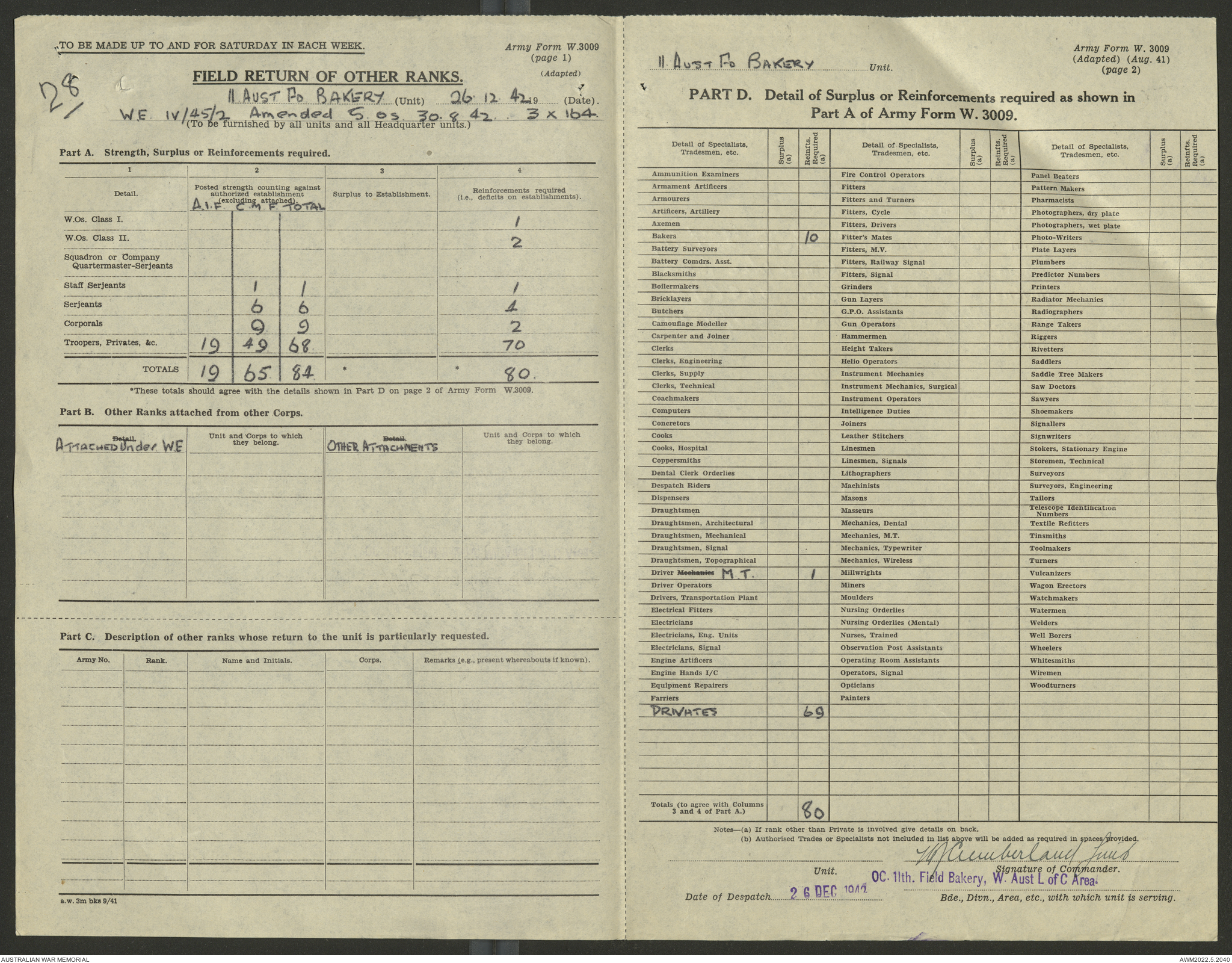 AWM52 10/27/13/1 - [Unit War Diaries, 1939-45 War] 11 Australian Field Baking Company, November 1942 - April 1943