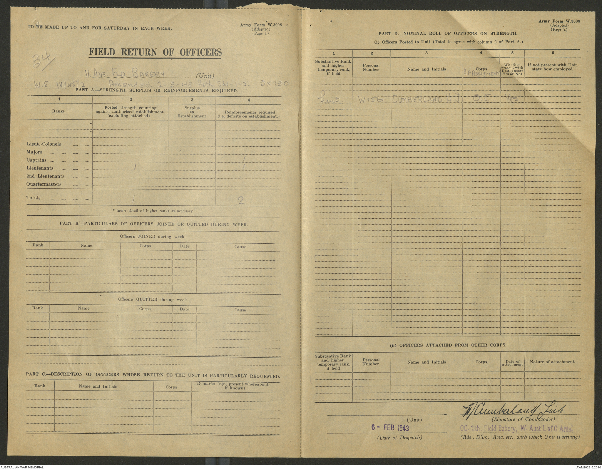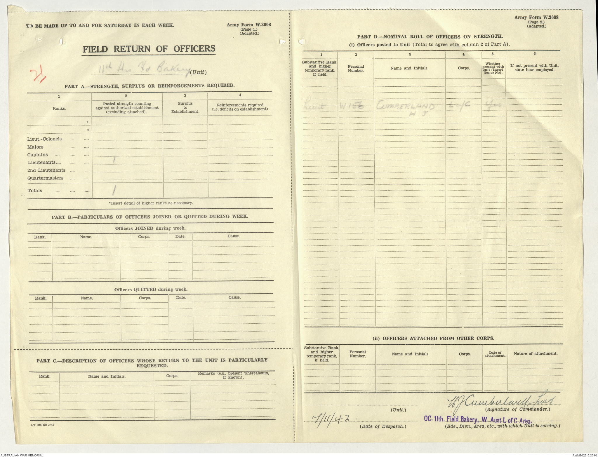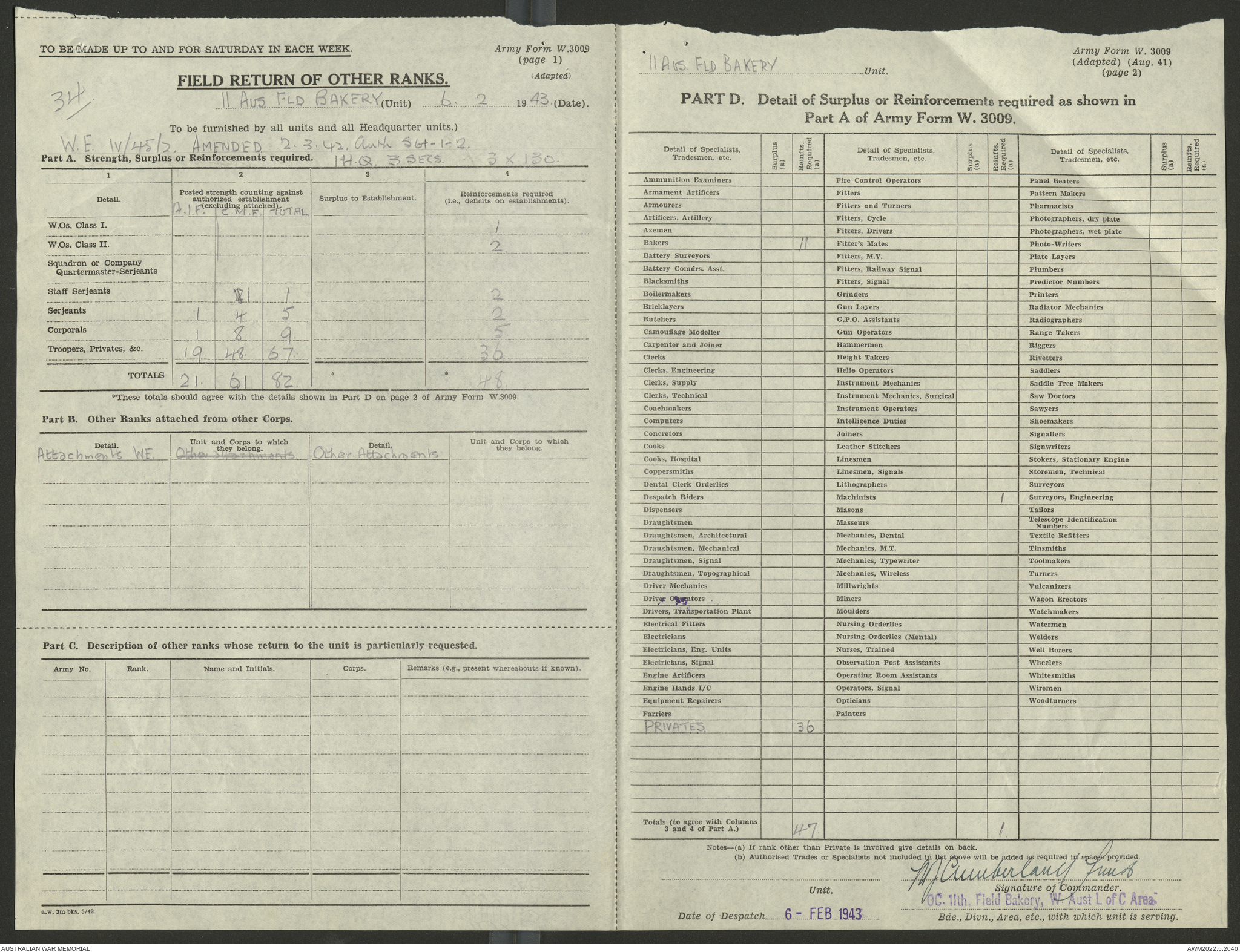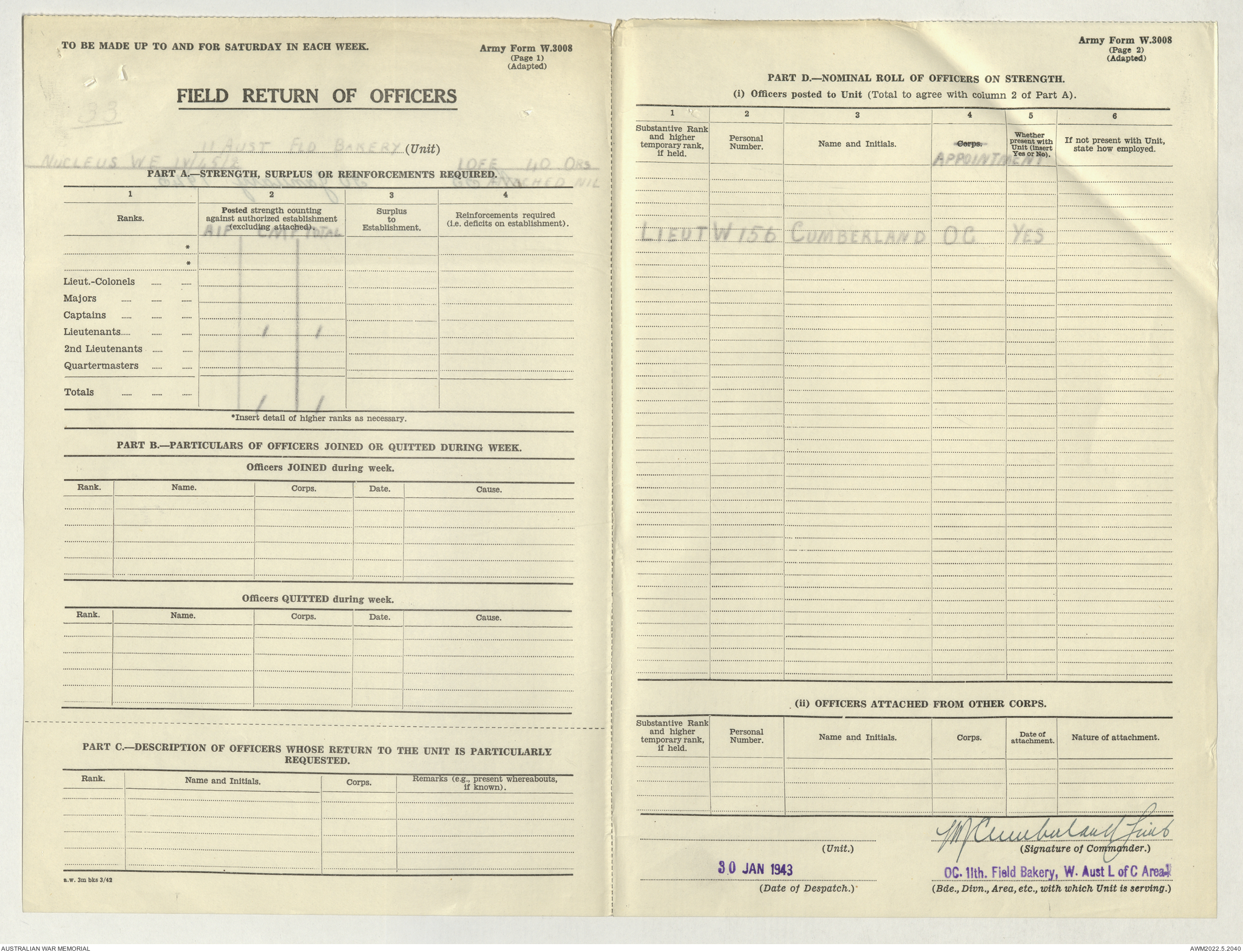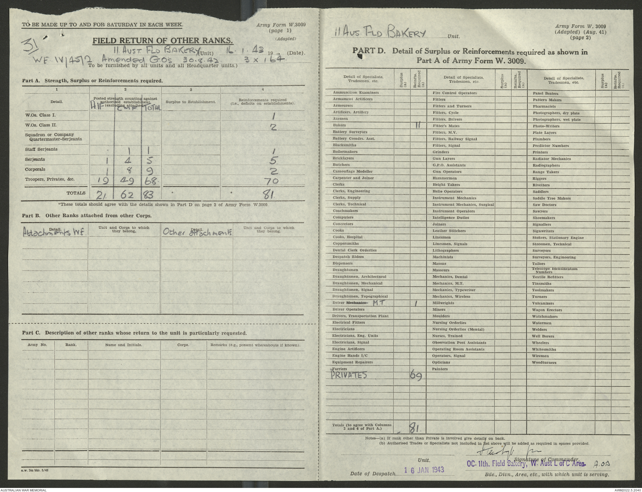 AWM52 10/27/13/1 - [Unit War Diaries, 1939-45 War] 11 Australian Field Baking Company, November 1942 - April 1943