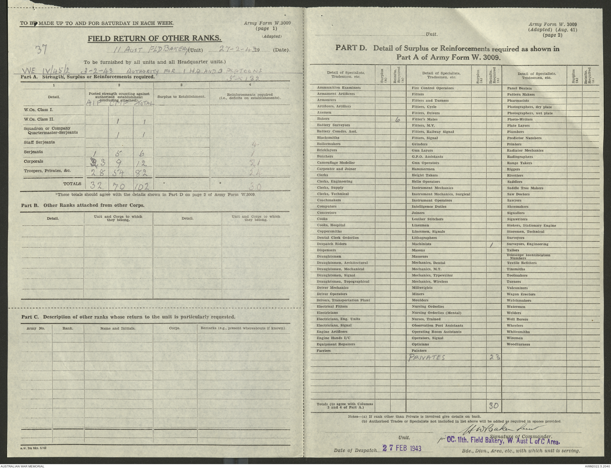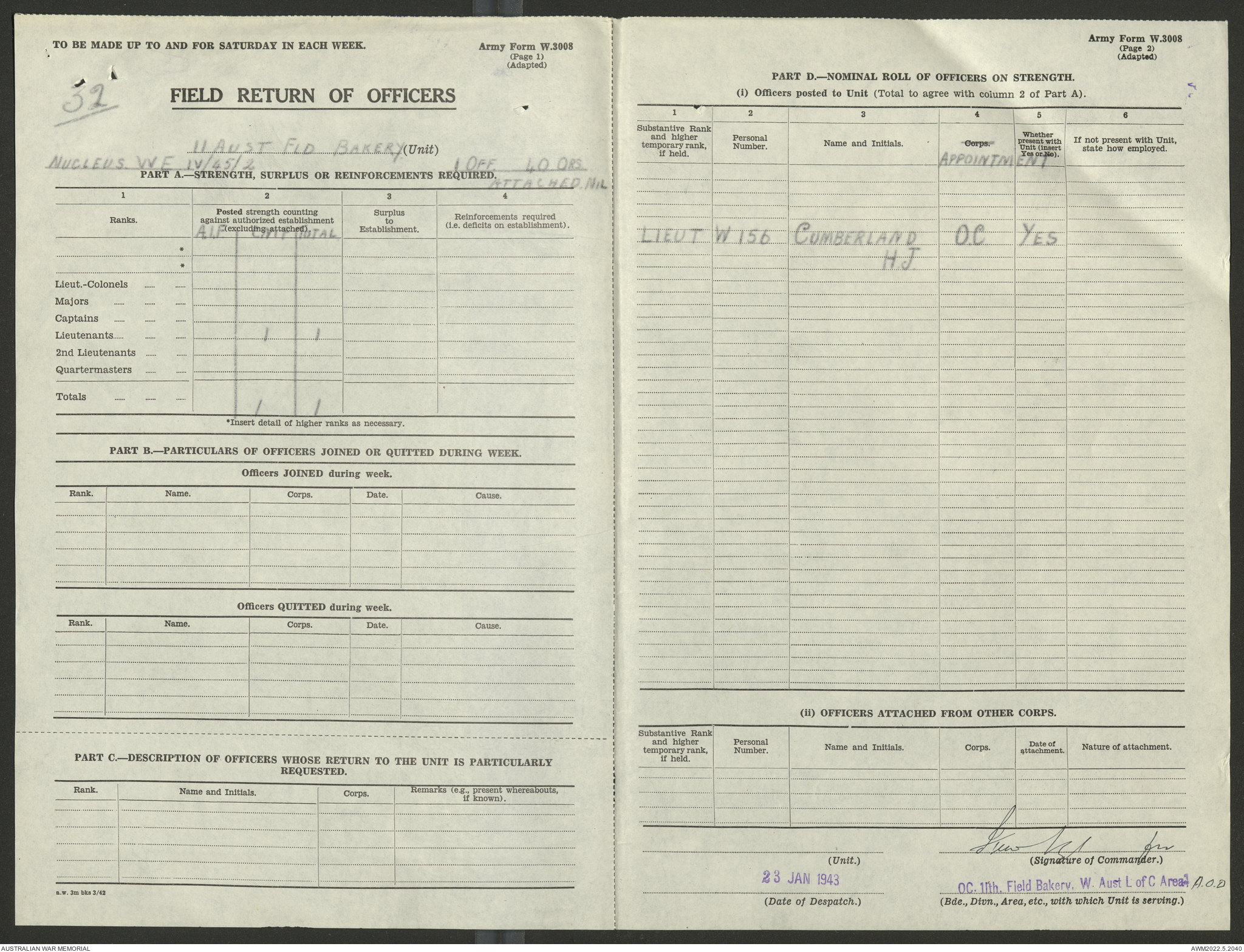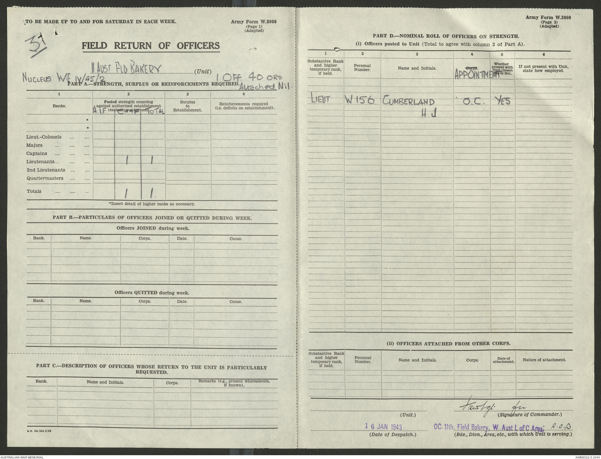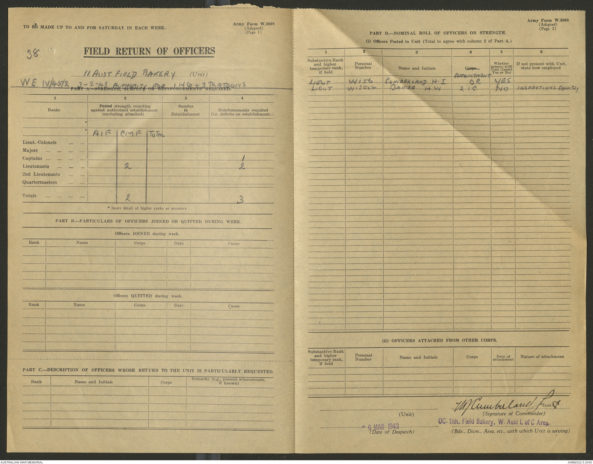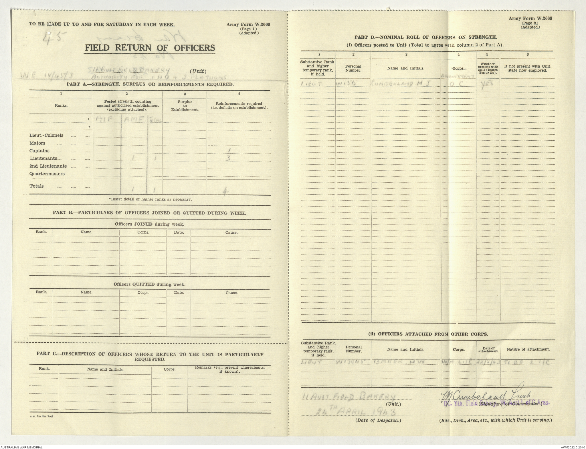 AWM52 10/27/13/1 - [Unit War Diaries, 1939-45 War] 11 Australian Field Baking Company, November 1942 - April 1943