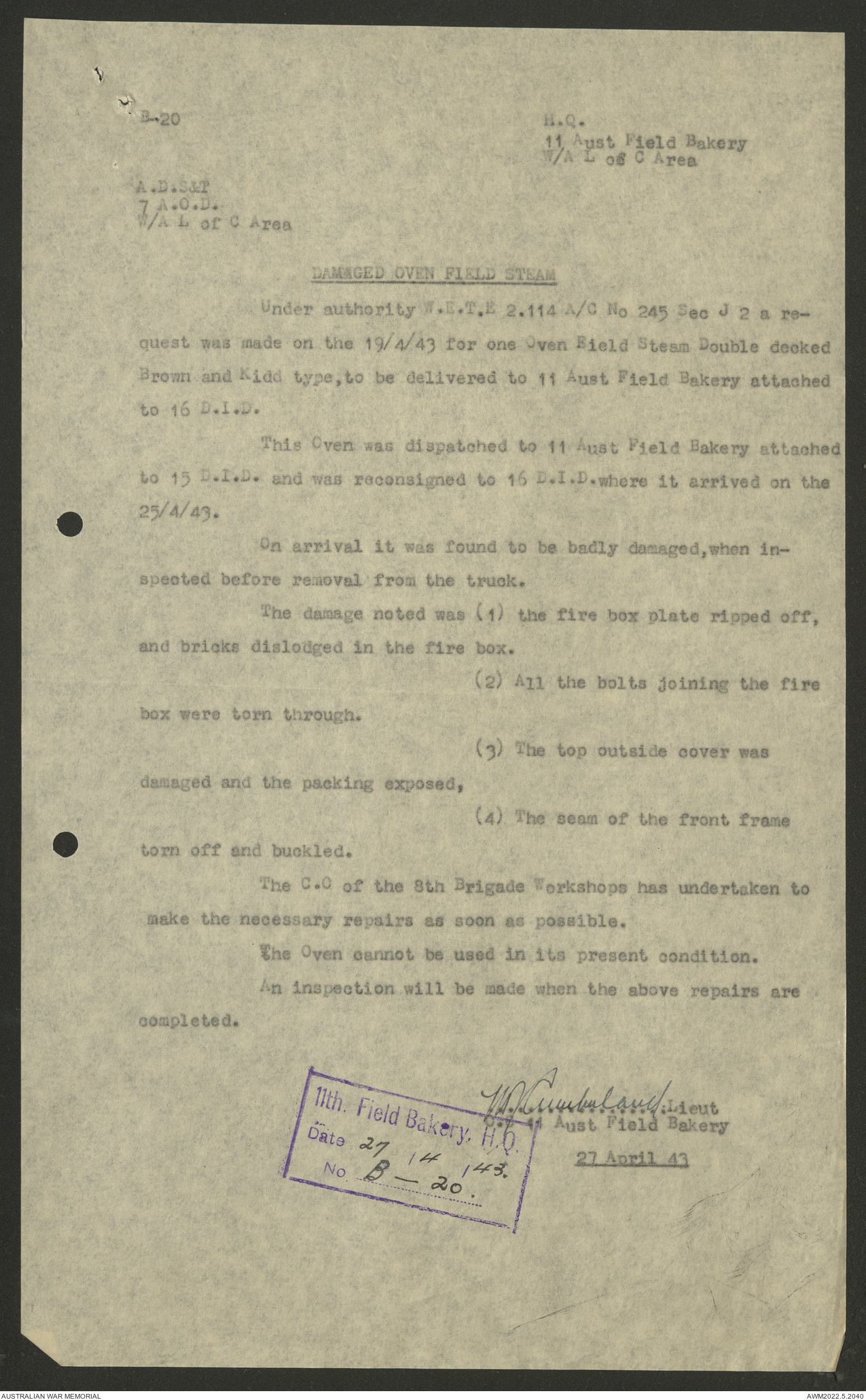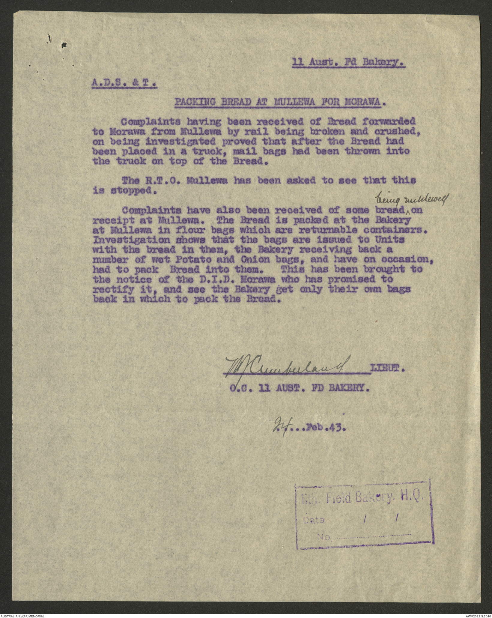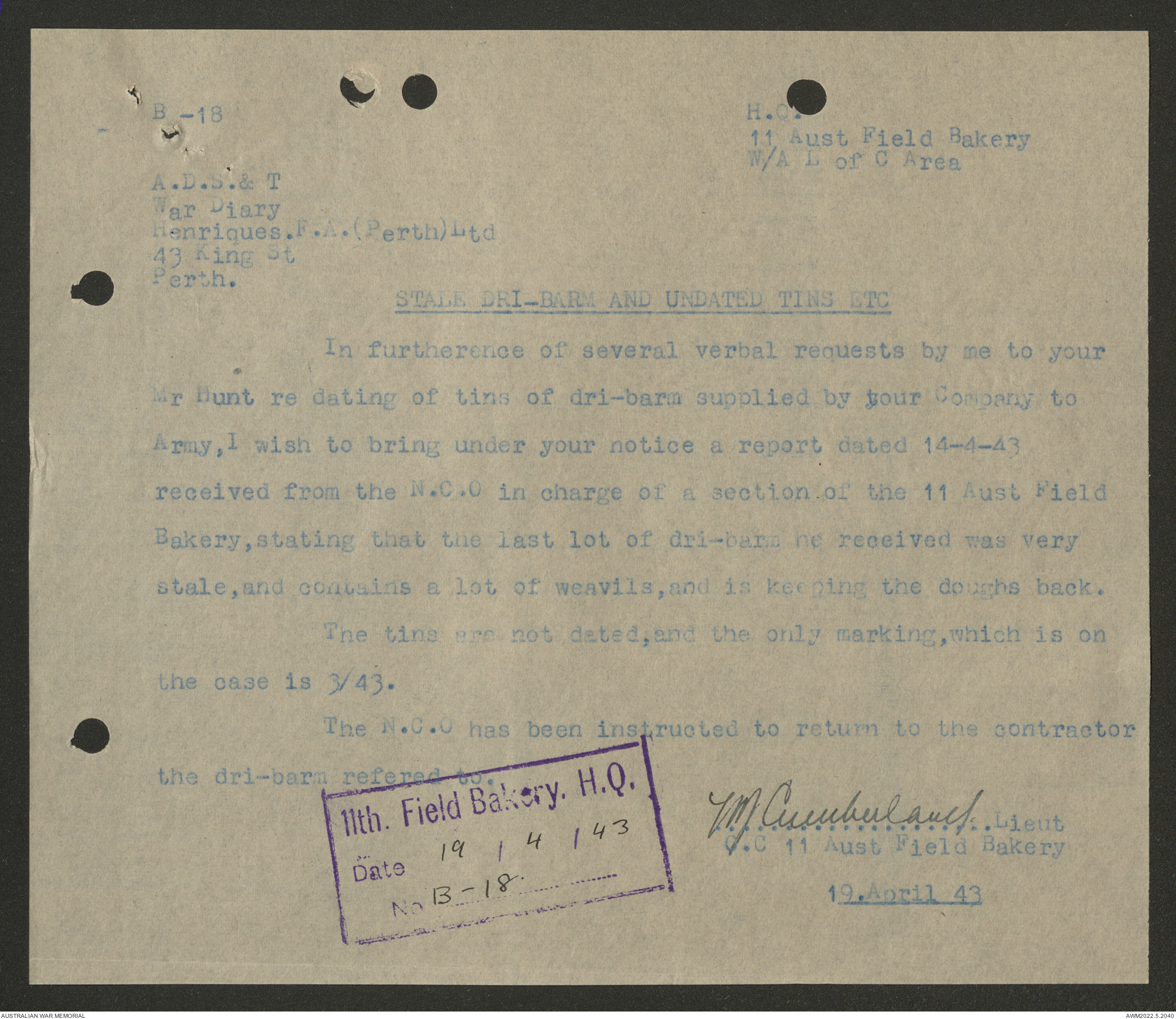 - AWM52 10/27/13 - 11 Australian Field Baking Company