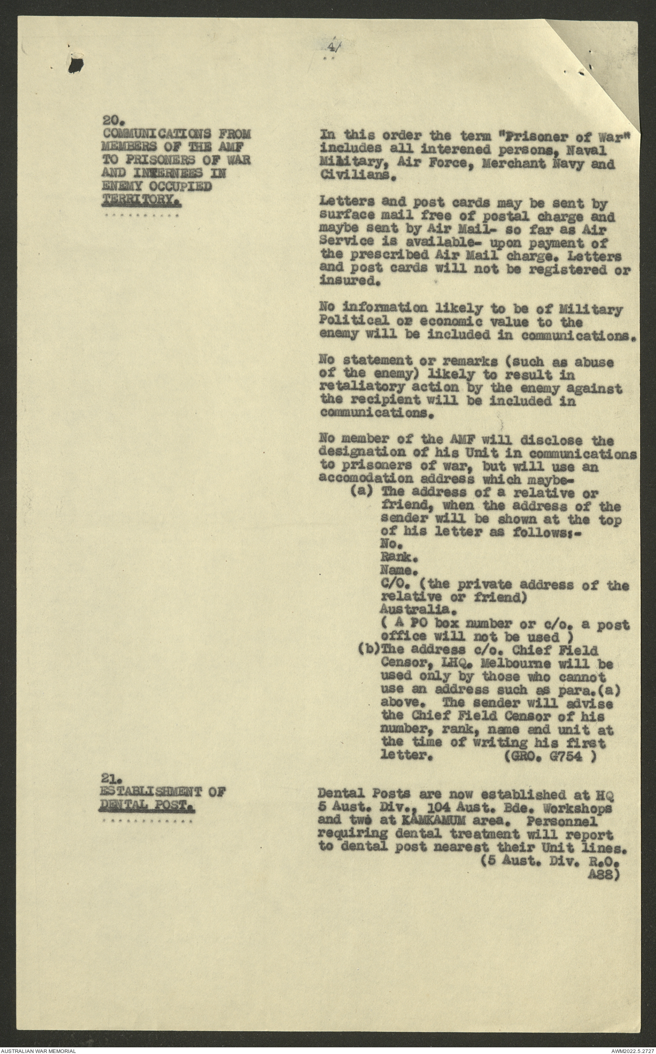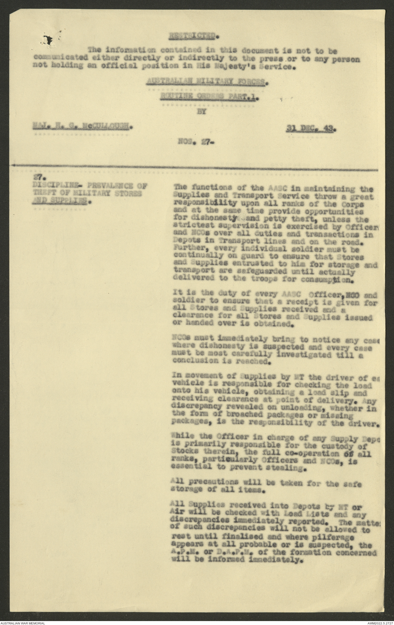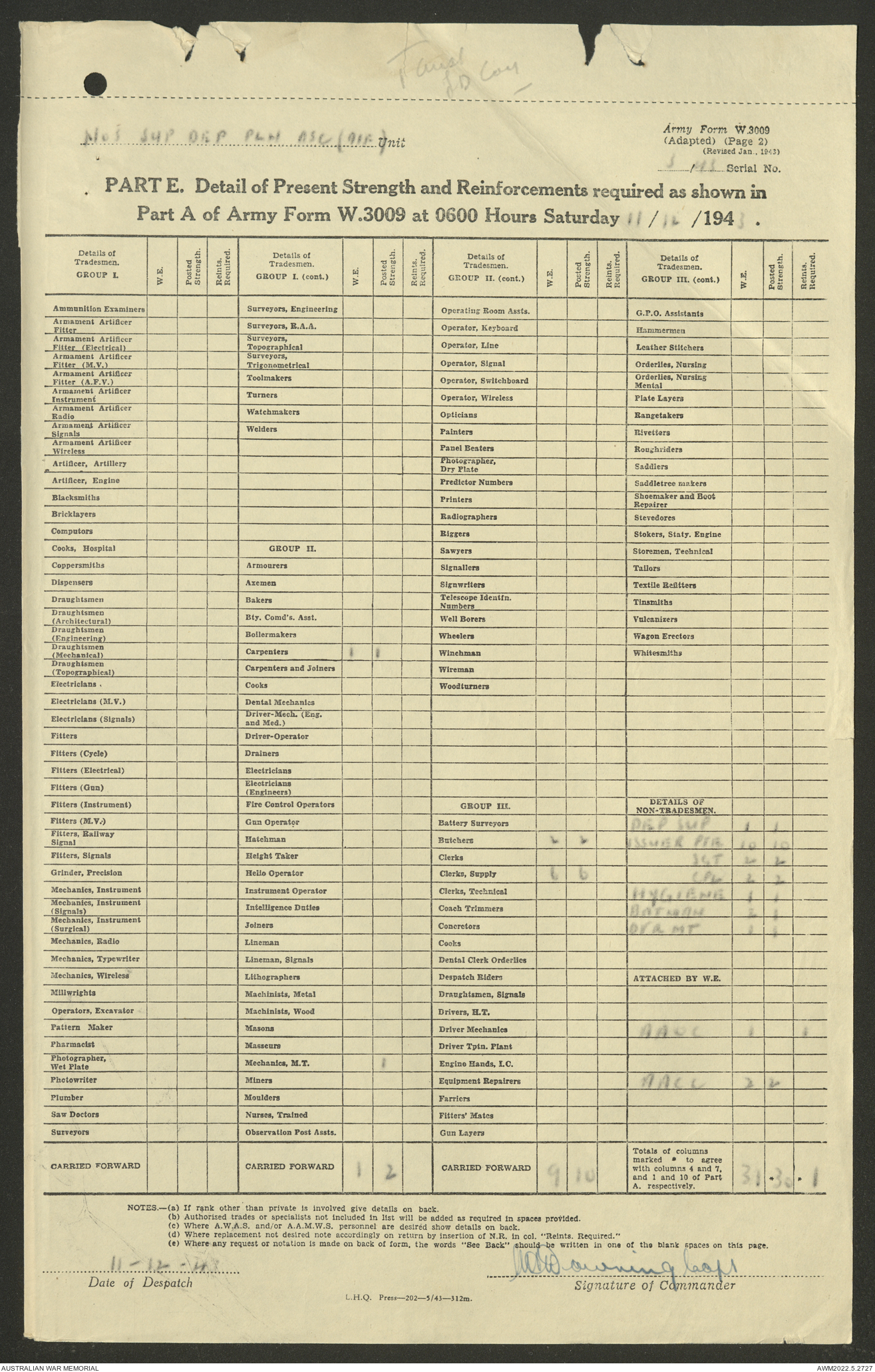 - AWM52 10/38/1 - 1 Australian Supply Depot Company