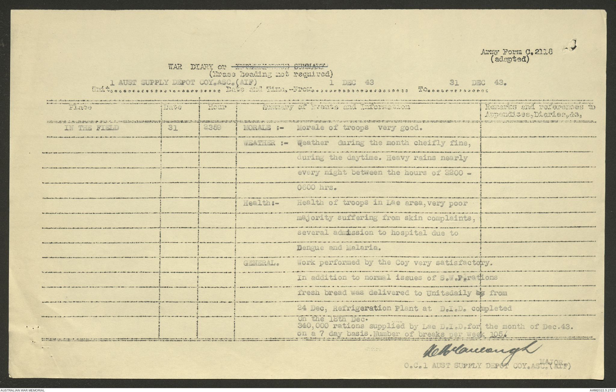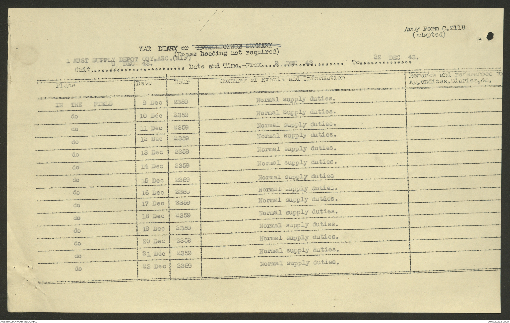 AWM52 10/38/1/4 - [Unit War Diaries, 1939-45 War] 1 Australian Supply Depot Company, November - December 1943