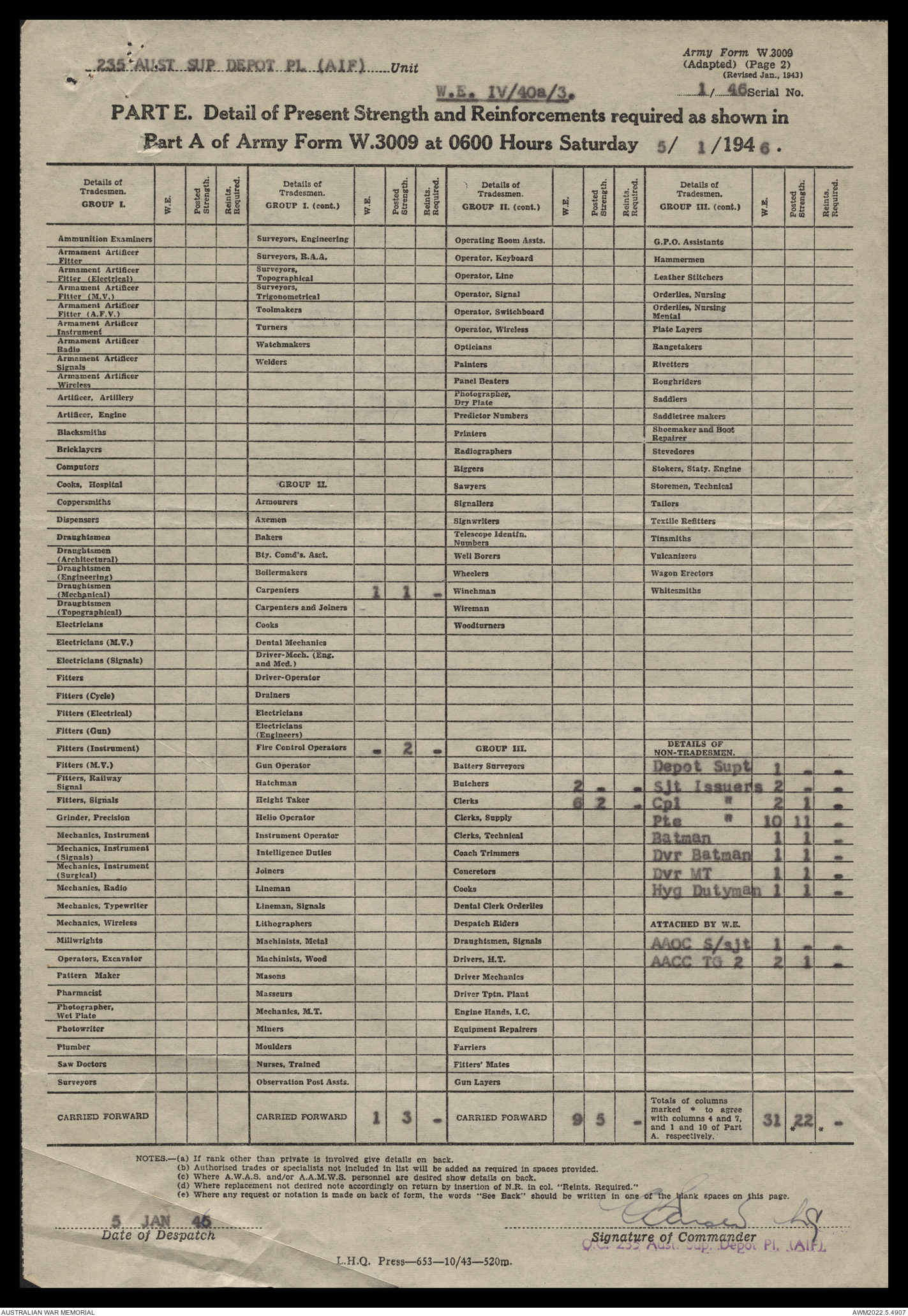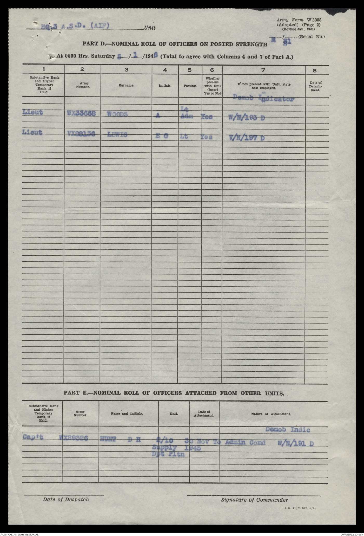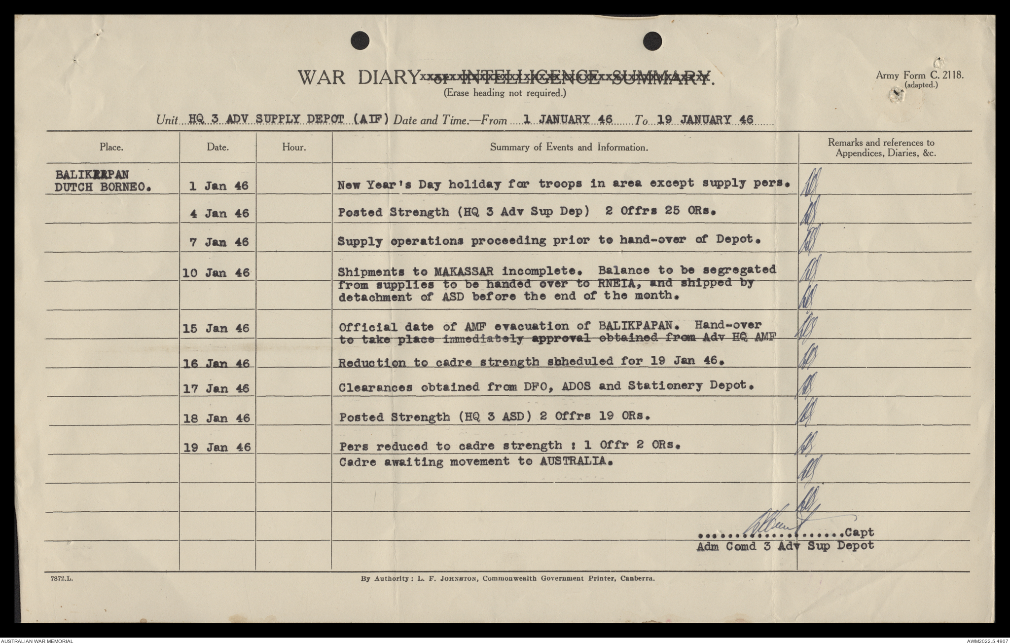 - AWM52 10/38/3 - HQ 3 Australian Supply Depot Company