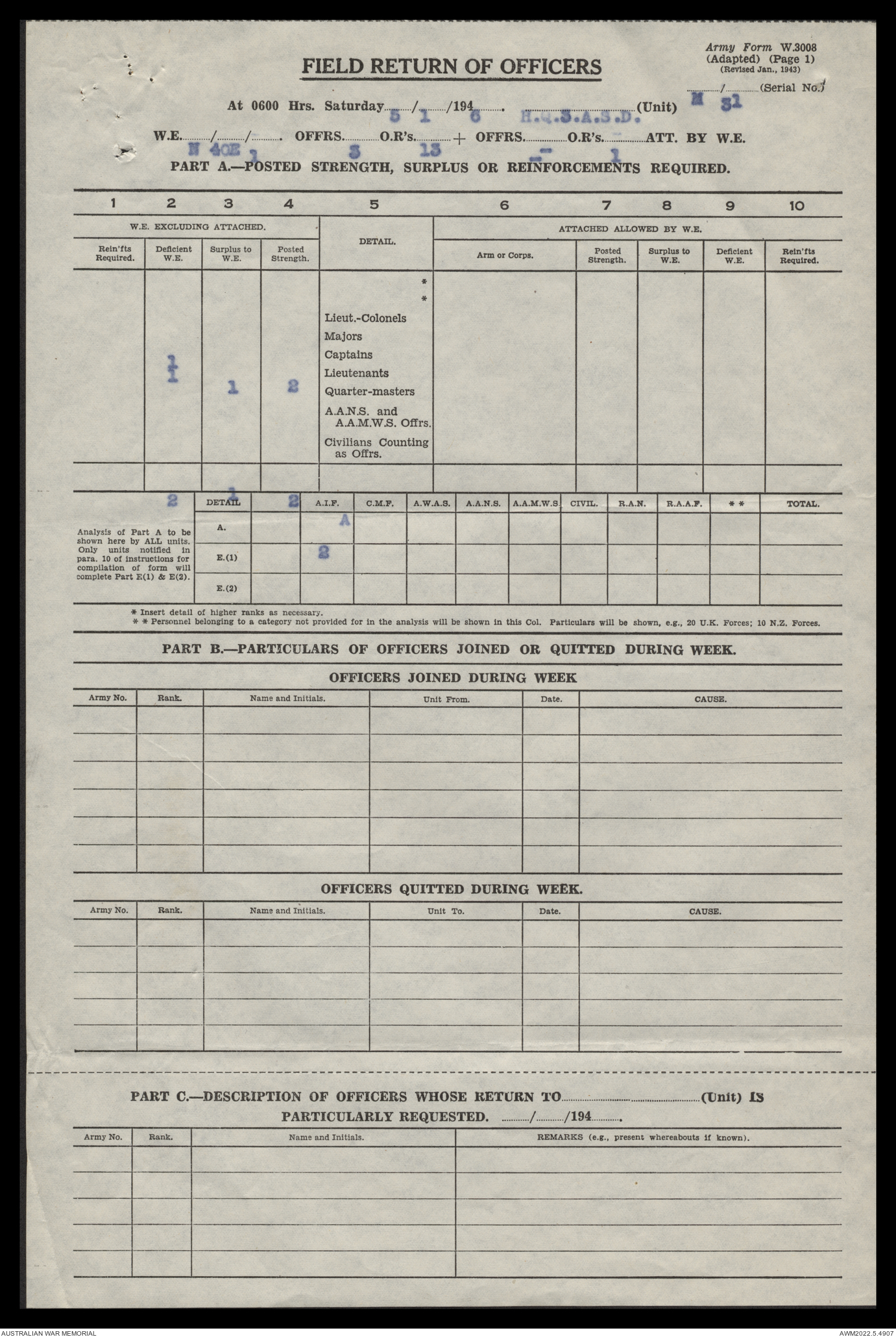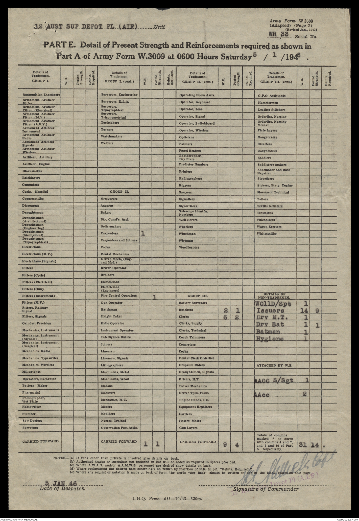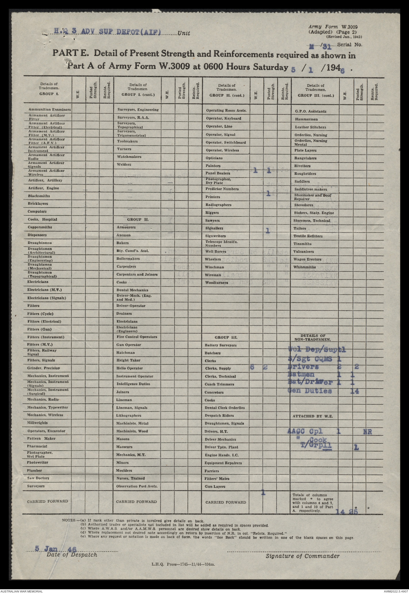 - AWM52 10/38/3 - HQ 3 Australian Supply Depot Company