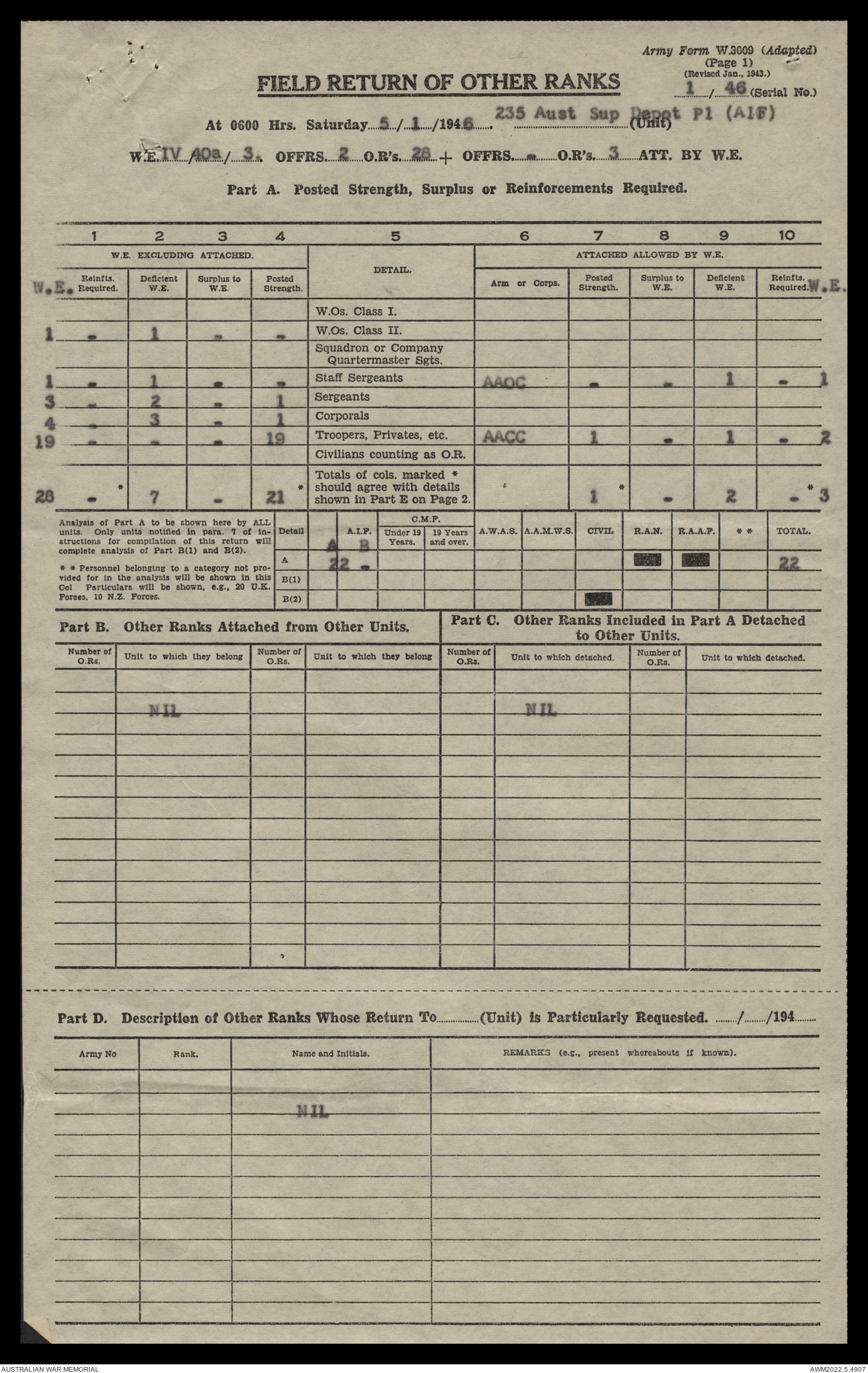 AWM52 10/38/3/6 - [Unit War Diaries, 1939-45 War] HQ 3 Australian Supply Depot Company, January 1946