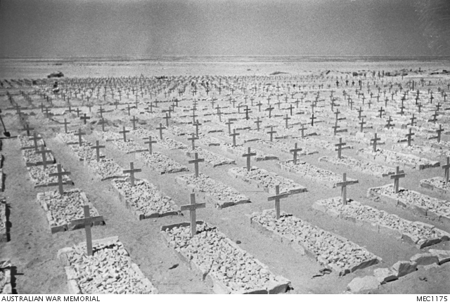 El Alamein, Western Desert, Egypt. c. 1943. View of the AIF section of the cemetery at El Alamein.