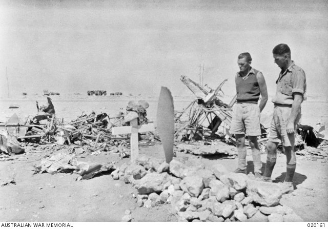 - A broken propeller blade and a wooden cross mark the grave of Sergeant J.H.G. Webster, No 73 ...