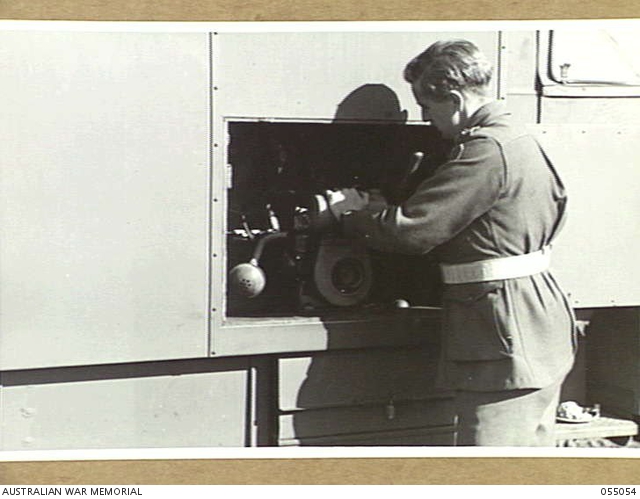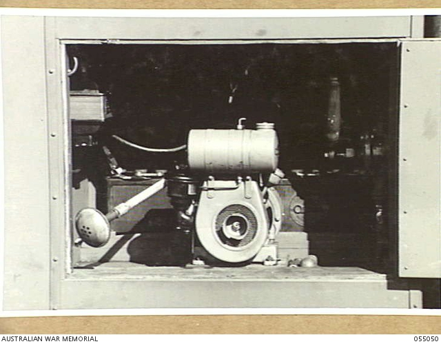 - BROADMEADOW, NSW. 1943-08-10. LIGHTING UNIT OF THE 2/1ST CHEMICAL WARFARE LABORATORY VEHICLE, ...