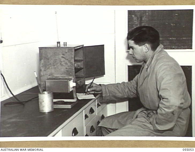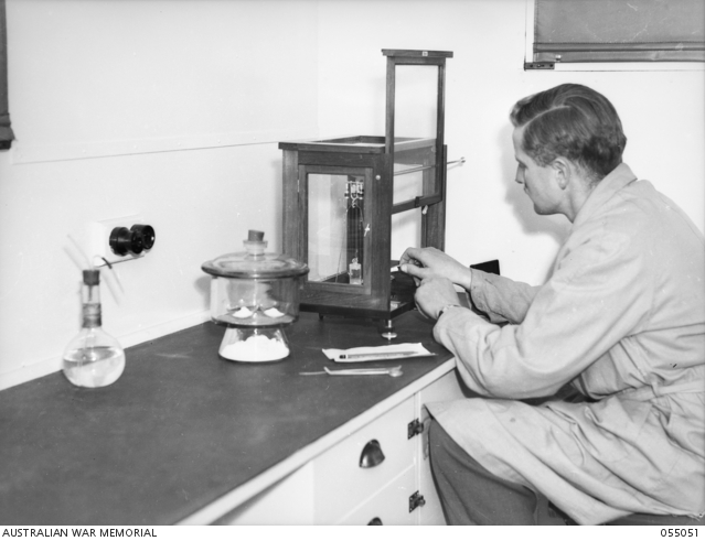 - BROADMEADOW, NSW. 1943-08-10. VX16207 SAPPER W. MURRAY, A FITTER OF THE 2/1ST CHEMICAL WARFARE ...