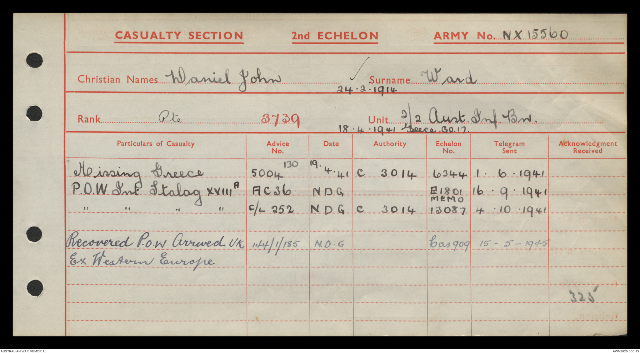 | Service number | NX15560 |